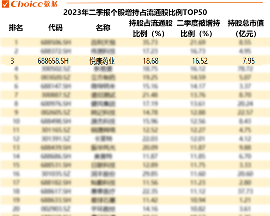 公募基金作为机构投资者,其持仓情况是市场公认的投资风向标,也是普通投资者密切关注的重点。Choice数据统计显示,悦康药业二季度被增持比例达16.52%。公募基金的二季度加仓,释放出资本市场持续看好悦康药业的利好信号。