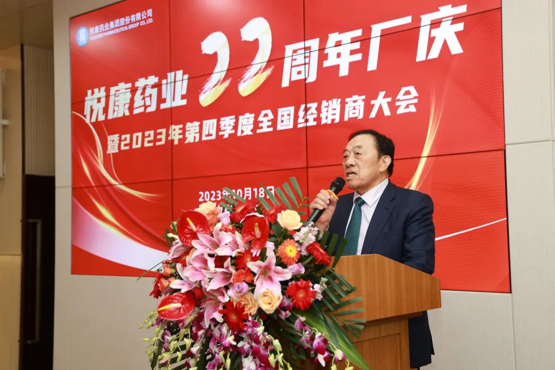 会议现场,于伟仕董事长回顾了悦康药业二十二年的光辉历程,畅谈了当年艰辛而豪迈的奋斗史,悦康药业与经销商合作伙伴凝心聚力,笃行实干,让悦康好药走进亿万百姓家,折射出悦康人的精神底色。