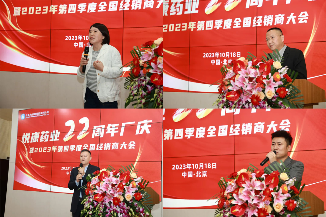 志合者,不以山海为远,同心者,不以日月为限。悦康的蓬勃发展离不开集团各部门、分子公司、全国经销商伙伴的合和同心。会上,悦康药业集团研究院、CRO科创鼎诚、集团品牌、营销中心销售与市场等业务负责人以及全国经销商代表共同登台,分享了悦康22周年之际集团各领域的业务总结与重点规划,为集团22周年厂庆献上了深切的祝福,彰显了悦康药业集团内外共鸣的团结力量。