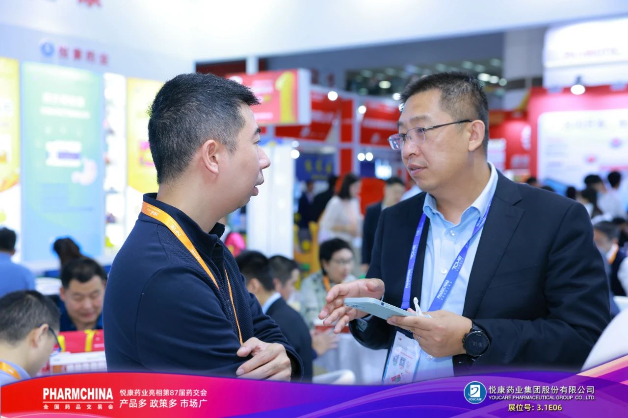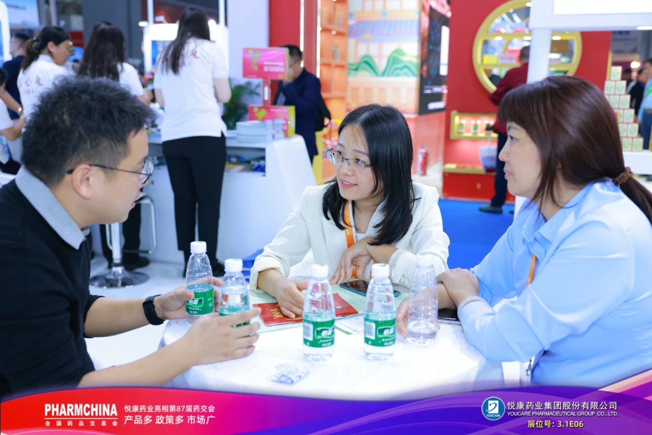 悦康药业高度重视合作伙伴关系,致力于与行业各方合和共赢,共谋发展。于伟仕董事长亲临展位,与合作伙伴深入交流,集团营销、市场、销售、产品、品牌等高管,分子公司负责人以及经销商代表,共同驻守现场与客户热情对接,洽谈沟通。悦康药业专业的参展工作人员,对产品优势、合作政策、市场政策、学术推广、品牌策略等方面进行精准传达,收获一众意向客户抛出的橄榄枝。