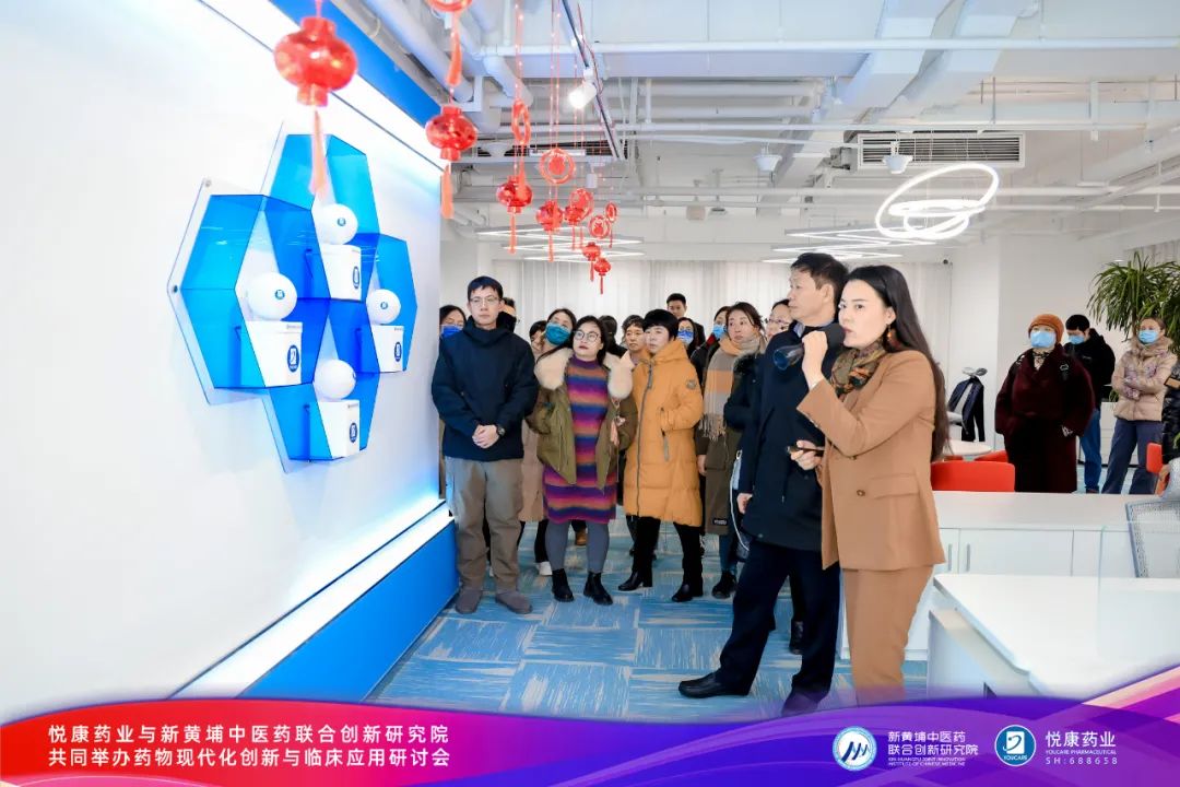 在悦康药物研究院,药物研究院宋更申院长介绍集团细胞与基因治疗创新中心、多肽药物创新中心成果与发展;走进制剂车间,专家们参观智能化银杏叶生产线,展示出悦康在制药自动化领域的创新发展;在鼎诚CRO,总经理王霞介绍了悦康与众多院士专家开展多领域、多产品临床科研的情况。