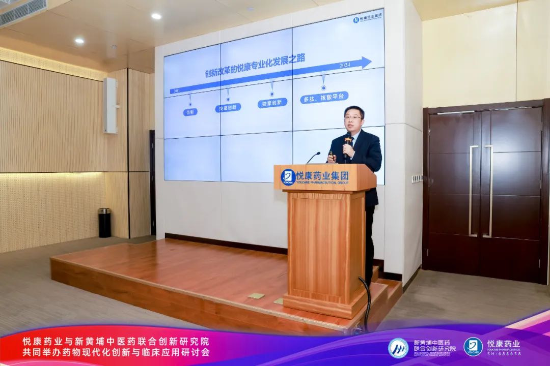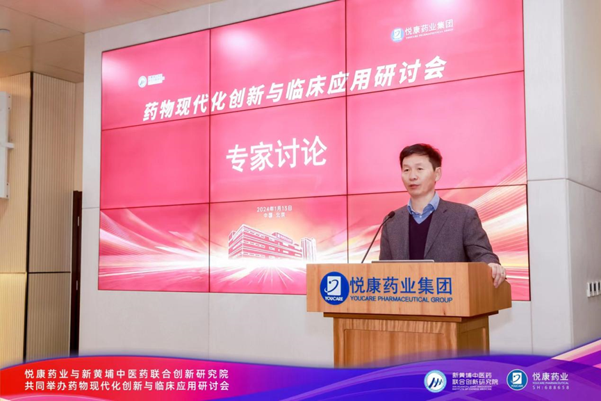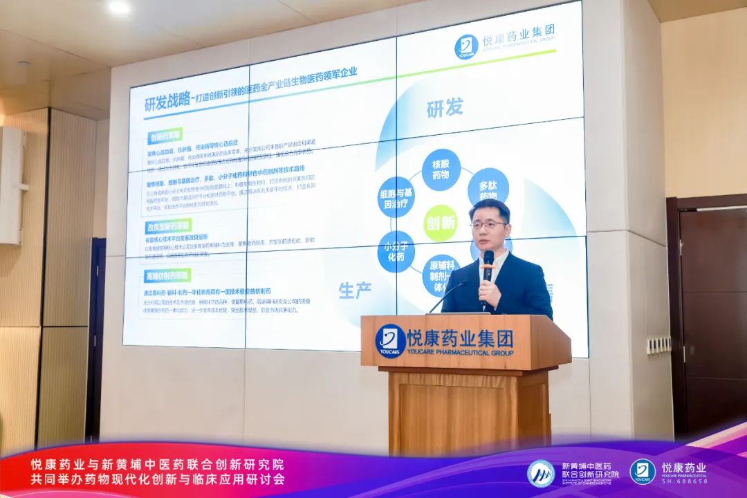 广东省新黄埔中医药联合创新研究院李瑞杰常务副院长就此次走进悦康调研办会,推进联创院与悦康药业医工合作主题作致辞。