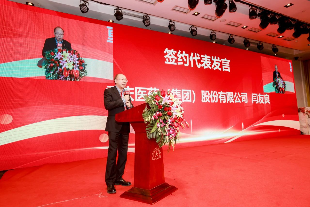 蜀中百川医药(河南)有限公司董事长岳红波先生、山东硕和医药有限公司董事长侯志国先生、广州乐药信息科技有限公司商务总监楚健明先生、重庆医药(集团)股份有限公司副总经理闫友良先生作为签约代表发言。