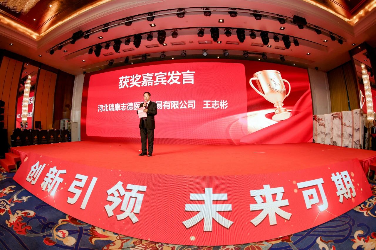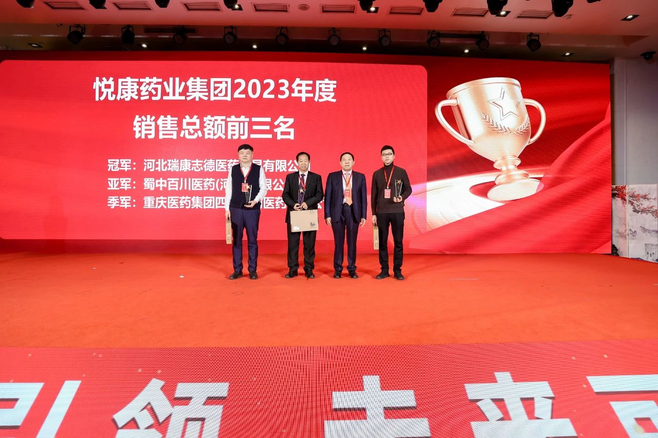 颁奖典礼最后,河北瑞康志德医药贸易有限公司董事长王志彬先生,作为“悦康药业集团2023年度销售总额前三名”冠军公司获奖嘉宾上台发言。