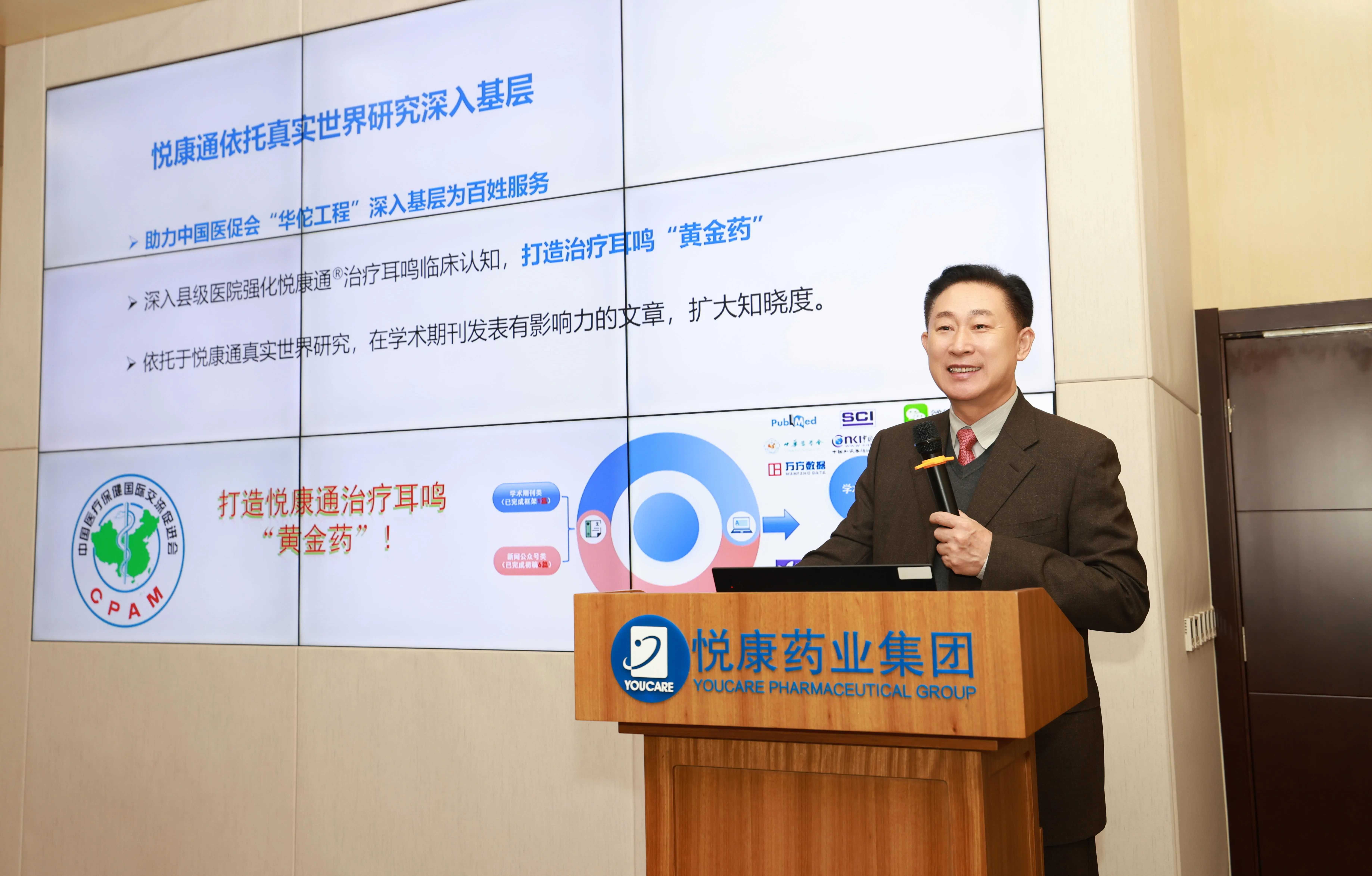作为悦康通治疗耳鸣真实世界临床研究项目主要研究者,韩院士对悦康通耳鸣真实世界研究的工作汇报作出详尽的战略指导。他对耳鸣的流行病学、发病机理、治疗现状等方面进行全面剖析,深入探讨了悦康通银杏提取物在耳鸣治疗中的作用,并就药物有效性基础研究、有效成分提纯之后的化药转化,以及老龄化背景下抗衰老、抗氧化研究等方向,对悦康通真实世界研究作出顶层设计,为后续实践探索指明方向。