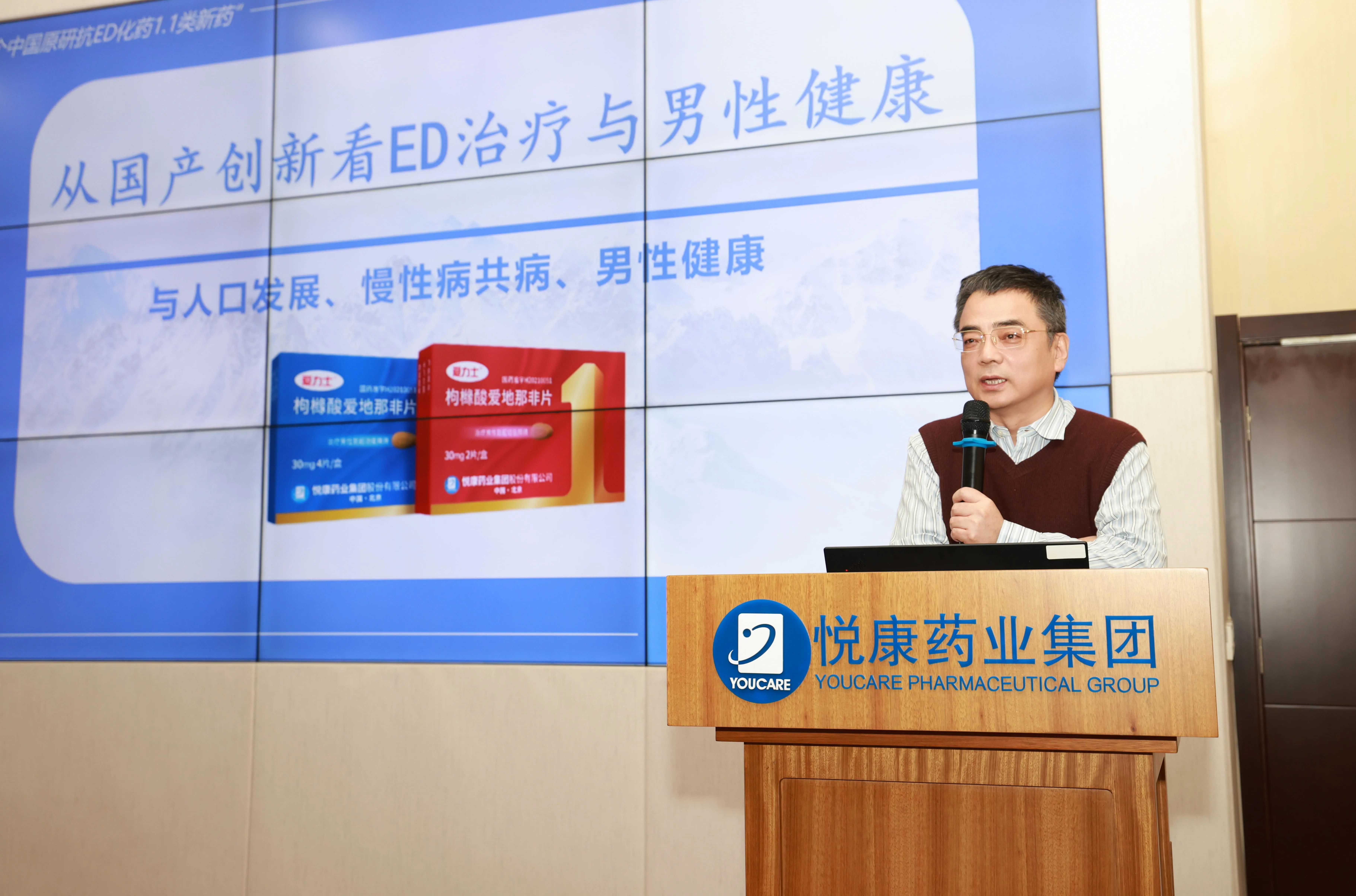 爱力士枸橼酸爱地那非片上市后万例临床研究的主要研究者,北京大学第一医院的张志超教授以“从国产创新看ED治疗与男性健康”为题,对国内第一款自主研发的PDE-5抑制剂爱力士枸橼酸爱地那非片进行了详细介绍。张教授从提高人民生活品质、优化人口发展战略的国家政策层面入手,提到悦康爱力士作为原研抗ED新药,扛起国产抗ED原研大旗,为广大患者带来了更大的临床获益。