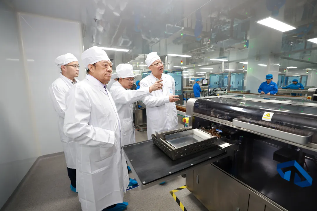 王剑伟一行实地参观了悦康药业集团展厅、药物研究院、生产车间和鼎城CRO,深入了解悦康药业全产业链体系、创新研发成果和智能制造体系,对悦康药业在研发领域的持续大力投入表示高度认可。