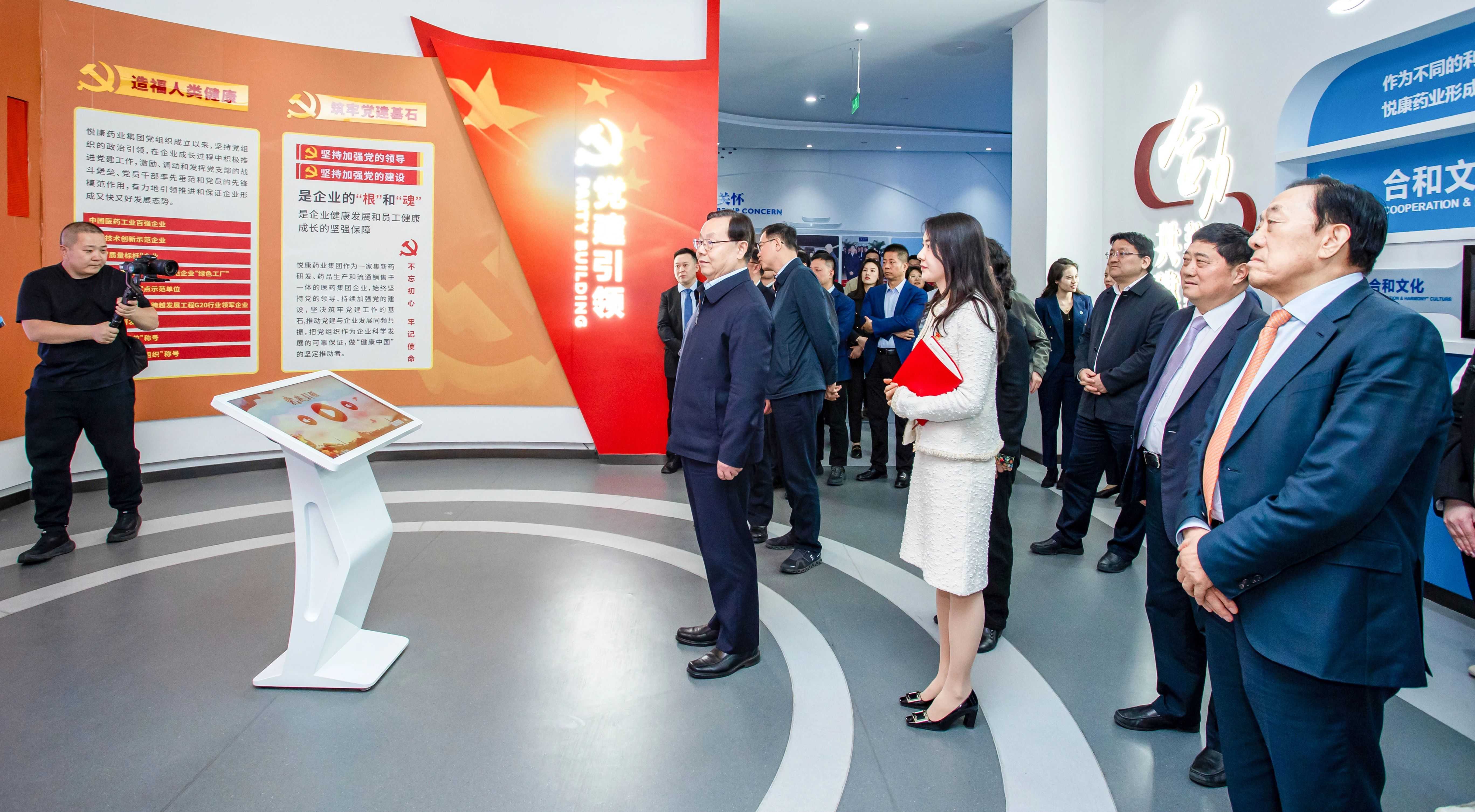 调研组一行深入悦康药业集团,实地考察了悦康药业集团展厅、药物研究院、质检中心与数字化车间,并重点关注了悦康药业通络健脑片(原复方银杏叶片)、紫花温肺止嗽颗粒和注射用羟基红花黄色素A三款中药创新药,及银杏叶提取物注射液生产线的数字化车间,详细了解了悦康药业现有产品、创新药研发及未来战略规划,摸底企业发展情况,倾听企业实际诉求。