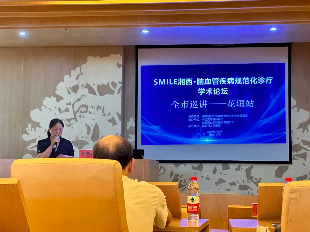 会议伊始,由花垣县人民医院党委副书记、院长颜贵新进行致辞。颜院长指出,近年来随着人口老龄化和社会城镇化步伐的加快,心脑血管病的发病率和患病率均持续上升,为更好地的促进神经内科建设发展,提高疾病诊疗能力,规范疾病诊治流程,特发起“悦享健康·湘西”学术论坛,聚焦脑部、周围血流及神经障碍诊疗思路,通过临床文献展示、精粹病例研讨、指南共识分享等形式,更好地帮助各级医疗机构临床医生加强学术交流。