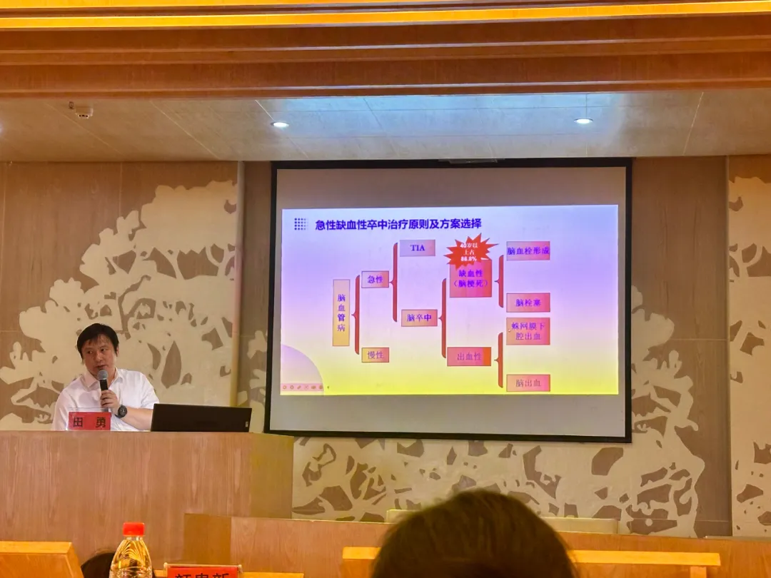 湘西州人民医院神内科田勇主任以《中国脑血管病临床管理指南(第2版)解读》为题进行分享,特节选适合基层贴近临床内容,涉及脑血管病概述、脑血管高危人群管理、脑血管病急性期管理策略以及中风120的早期识别。田主任表示,缺血性脑血管病占脑血管病的70%以上,建议在急性期发作时采取银杏叶提取物注射液等药物进行对症处理。