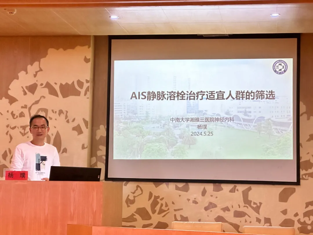中南大学湘雅三医院神内科杨璞博士分享了《AIS静脉溶栓治疗适宜人群的筛选》,介绍了需要溶栓的情况及治疗药物,强调溶栓的时机和重要性,在评估患者发病时间和出血风险后,可加用单抗药物。杨博士通过自己的临床经验,结合多个病例分享合并手术外伤、合并头颈部血管疾病、合并心脏疾病、合并肿瘤、妊娠相关及月经期AIS、惊厥发病的AIS等多种情况的应对方式。