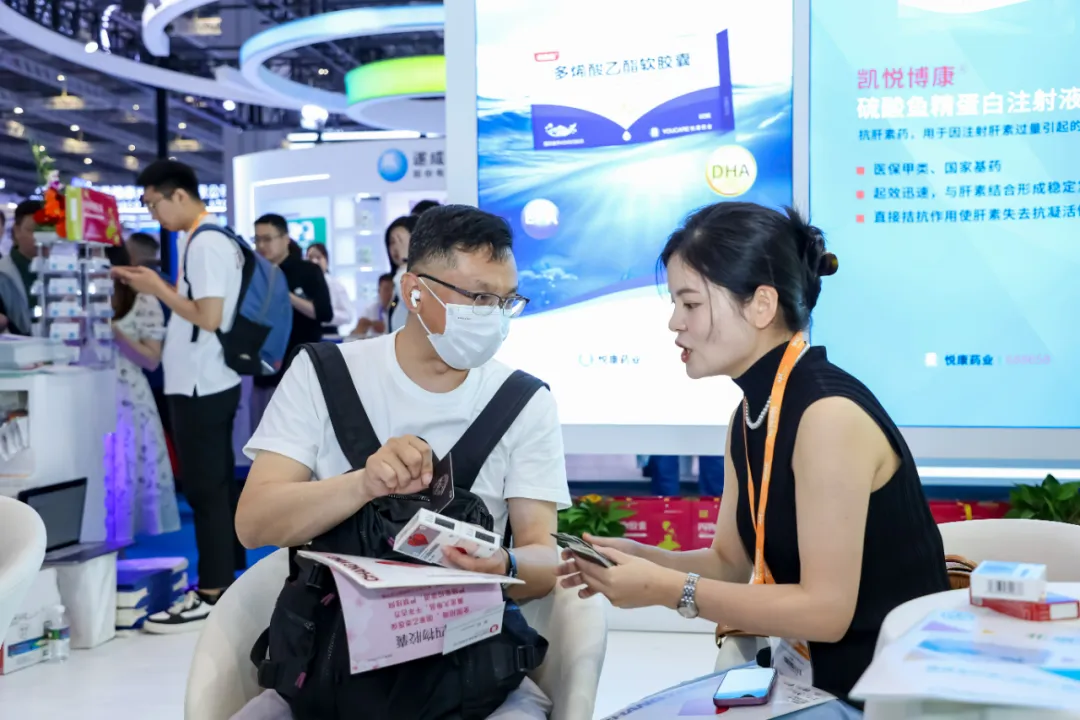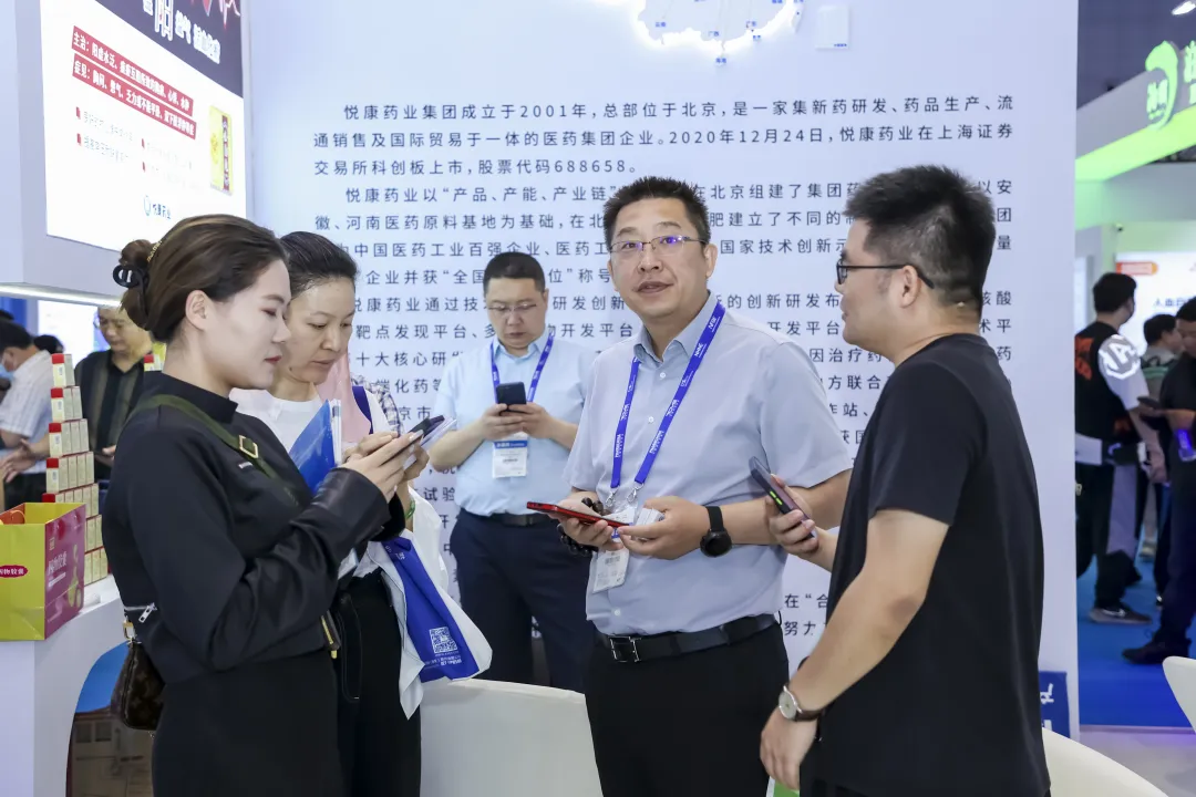 在悦康药业的展区内,丰富的展示产品吸引了众多观众驻足参观。络绎不绝的洽谈与咨询,显示出客户对悦康药业产品的高度关注和浓厚兴趣。悦康药业始终坚持“以客户为中心”,集团高管与营销、市场、销售、控销、合作、电商、品牌等业务负责人,分子公司高层,以及经销商代表悉数到场,对产品优势、合作政策等方面进行精准传达,与客户热情对接,洽谈沟通。