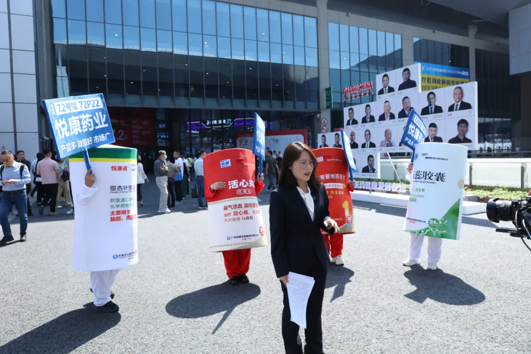 现场,悦康药业的四款明星产品:悦康通 银杏叶提取物注射液、悦康 活心丸(浓缩丸)、爱力士 枸橼酸爱地那非片和悦康 百蕊胶囊,以人偶形象活跃于各展馆,吸引客户驻足,提升展位人气。同时,各业务负责人、经销商代表及工作人员轮番出镜直播,实现线上和线下传播渠道的广泛覆盖,增加品牌曝光。