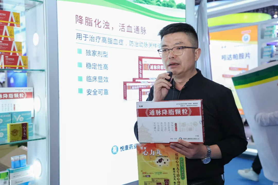 悦康药业携旗下悦康通 银杏叶提取物注射液、悦康 活心丸(浓缩丸)、爱力士 枸橼酸爱地那非片、悦康 百蕊胶囊、悦康 通脉降脂颗粒、悦康 四物胶囊等明星主力产品在内的100多个品种、200余个品规的药品精彩亮相,全面展示集团在心脑血管、消化系统、糖尿病、泌尿系统等多个核心治疗领域的产品力优势。