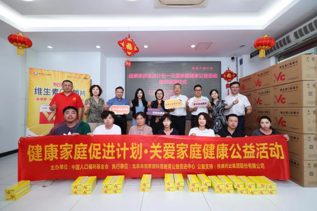 2024年5月起,悦康药业集团股份有限公司携手中国人口福利基金会,在全国范围内开展“健康中国行动—健康家庭促进计划”关爱家庭健康公益活动。悦康药业集团捐赠146.4万盒维生素C咀嚼片,用于分发给非营利性医疗机构开展该活动。