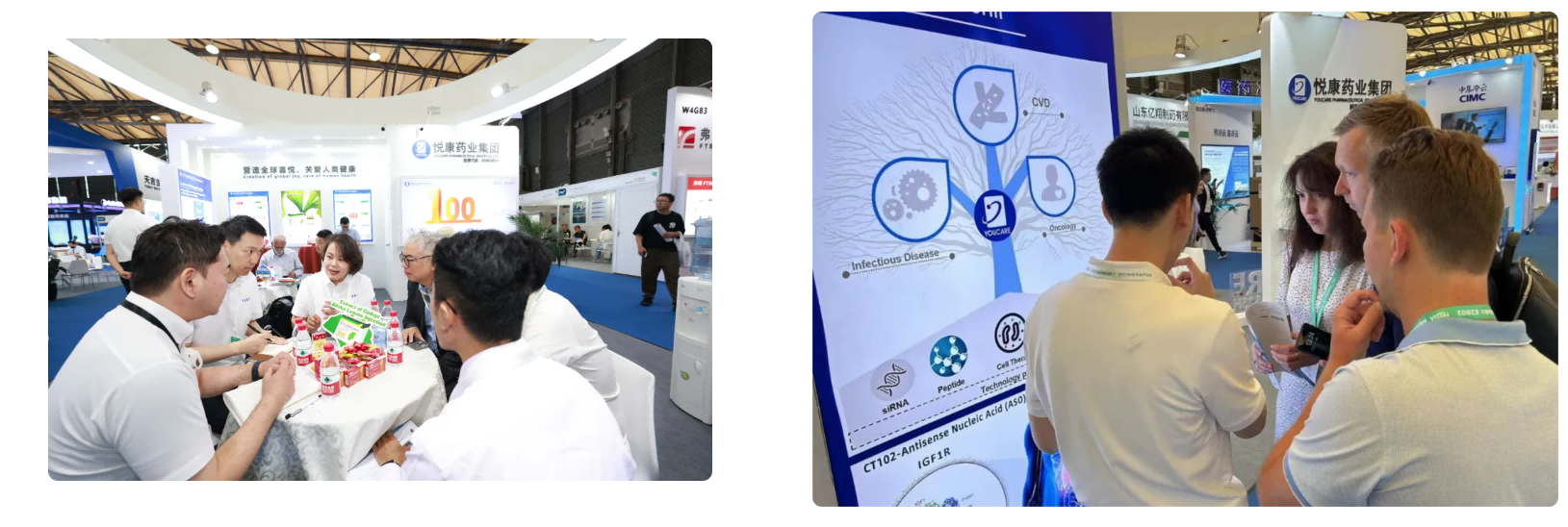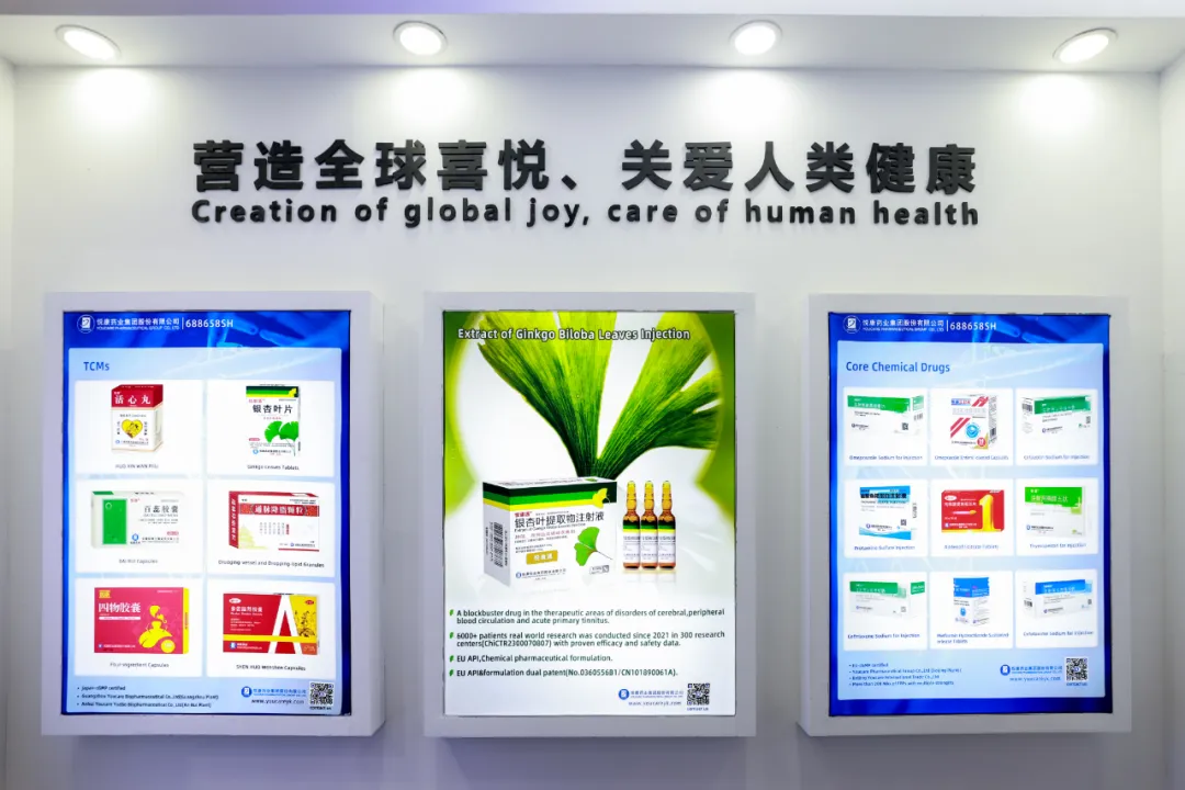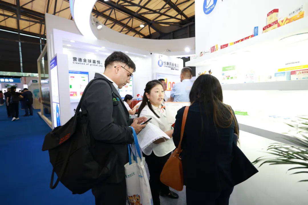 悦康药业集团携旗下包括银杏叶提取物注射液,枸橼酸爱地那非片,奥美拉唑肠溶胶囊,盐酸二甲双胍缓释片等明星产品在内的成品制剂,以及原辅料和中间体等全品类核心产品参展,吸引了来自欧洲、美洲、南亚、东南亚、中亚、非洲、拉丁美洲等世界各地的客户纷至沓来,展示了悦康药业在全球市场的强大实力和竞争力。