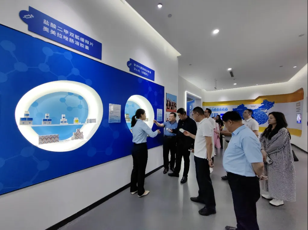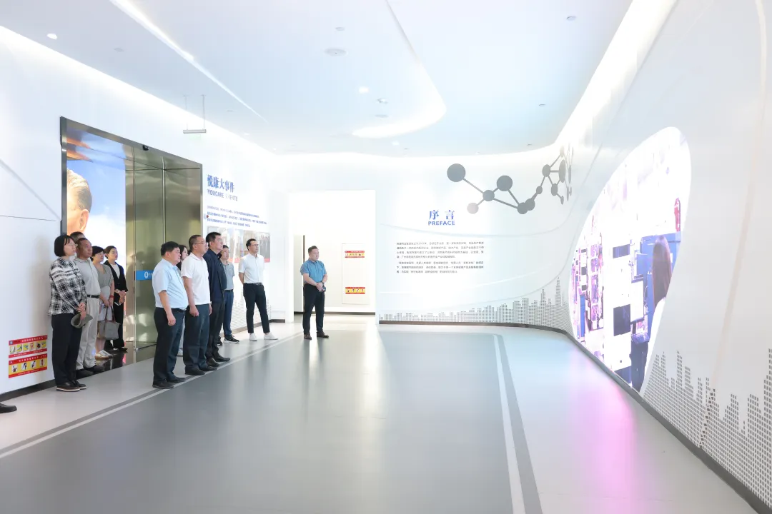 调研团领导一行实地参观了悦康药业集团展厅、药物研究院、质检中心及鼎诚CRO,详细了解了集团的发展历程、全产业链布局、生产能力、研发实力以及质量控制等情况。