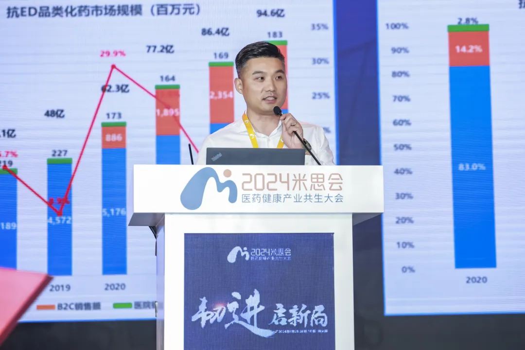 悦康药业零售事业部总经理臧志远在《爱地那非--抗ED品类红海中的蓝区》主题演讲中,围绕品类现状、市场机会、产品优势、推广策略,详细剖析了悦康药业1.1类创新药枸橼酸爱地那非的市场前景。他指出,随着中国人口老龄化的推进,ED药物市场潜力巨大。作为中国首款自主研发的PDE5抑制剂,爱地那非专为国人量身定制,数据显示其在效果、安全性和药效稳定方面优势显著。同时,爱地那非的独家通用名,使其深具长线市场教育价值,有望成为ED品类的国产原研爆品。