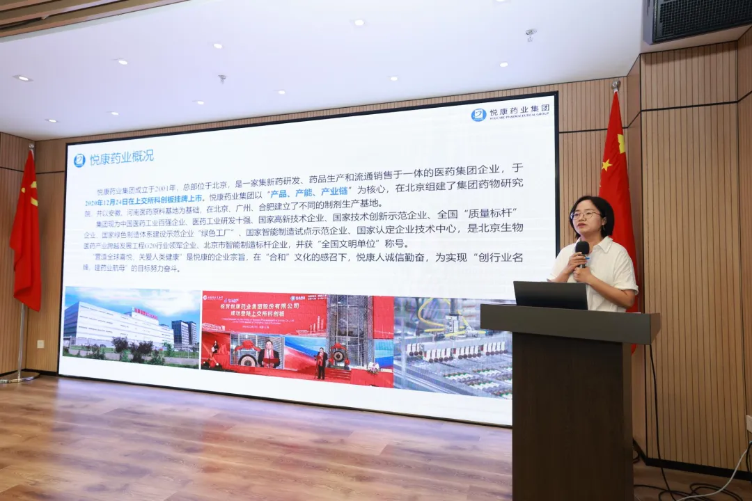 随后,北京同仁堂商业投资集团副总经理杨树伟,悦康药业集团市场部经理王雪洁、集团药物研究院博士周玉婷介绍了双方企业情况。会议最后,双方进一步对接了具体合作事宜。