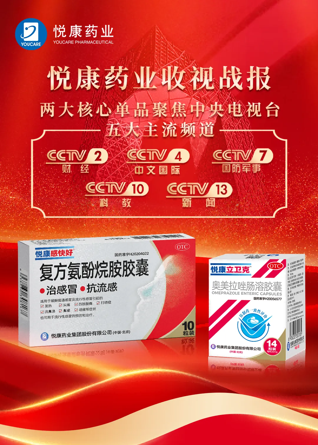 悦康药业立卫克®、感快好®9月央视收视战报!