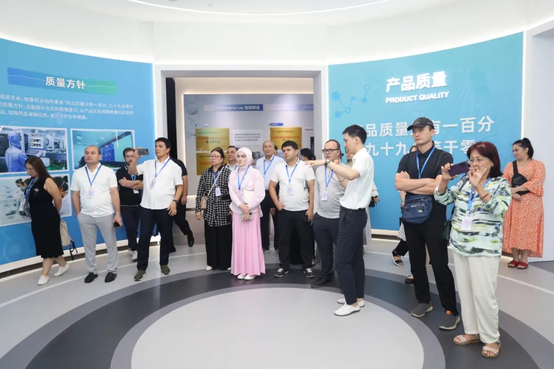 8月26日,乌兹别克斯坦医药署塔什干疫苗和血清研究所、尤努索夫学院、塔什干药学研究所及乌兹别克斯坦科学院组成的代表团率先到访。代表团深入悦康药业生产基地,全方位考察了从新药研发、智能化生产、质量控制到创新技术落地应用的完整产业链条。悦康药业团队重点介绍了已在乌兹别克斯坦市场销售的产品及市场反馈,公司“药品质量只有一百分,九十九分等于零”的质量理念赢得了代表团的高度认可,为后续合作提供了坚实保障。